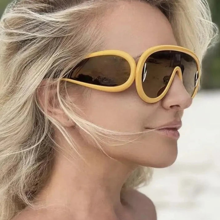 Introducing the New Shield Oversize Designer Elegant Eyeglasses. Designed with a stylish and sophisticated frame, these glasses offer a perfect blend of fashion and function. The oversize lenses provide a wider range of vision, while the designer details add a touch of elegance to your look. Perfect for those who want to make a statement while maintaining clear vision.